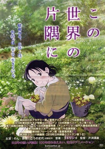 ●今日は、近くの公民館で自主興行の映画を見てきました。’この世界の片隅に’。昨年各種の賞を取った映画なのでごらんになった方も多いと思います。映画館だと入場料が高いのですが、こういう映画だと少し待てば安く見られます。(1000円)さすが人気作品…